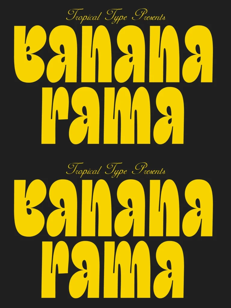 A silly font deserves a silly name and Bananarama is just that. A quirky, character filled, mixed caps typeface, with loads of personality. Bananarama is designed for fun and pairs nicely with vintage scripts and serifs.