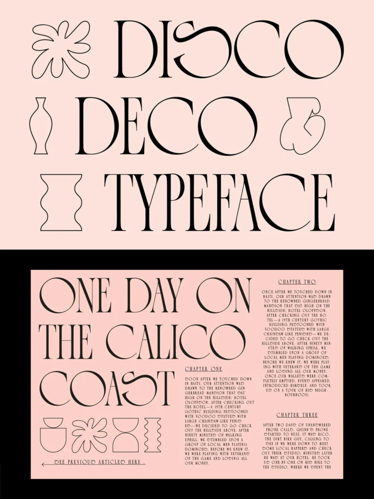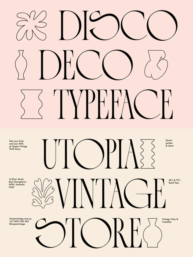Disco Deco is highly inspired by the art deco movement but with hints of different eras mixed in too. Make a funky poster with ease or a cool logo in seconds.