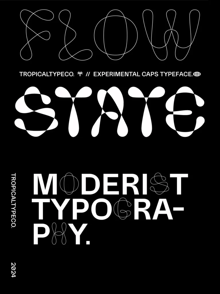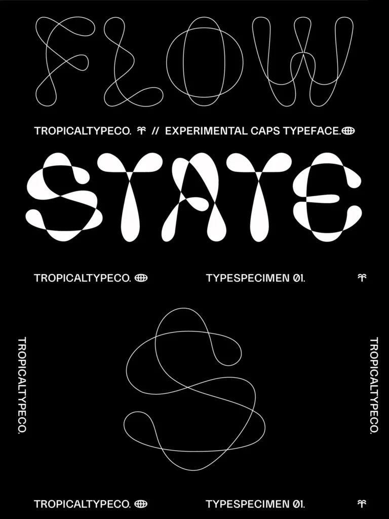 Flowstate is a smooth flowing experimental typeface. Mix and match with a clean sans (like Honeychrome variable, pictured in previews) or go solo for a futuristic vibe.