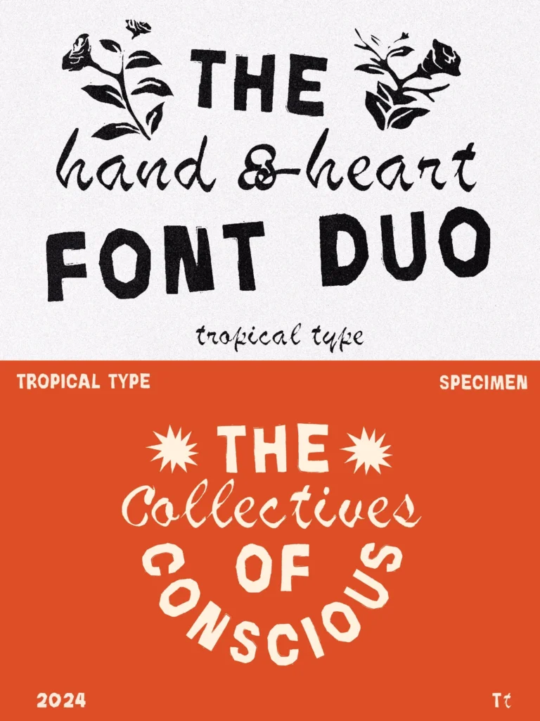 Hand & Heart is a real handmade font duo. Cut out of paper and a dry brushed script.
