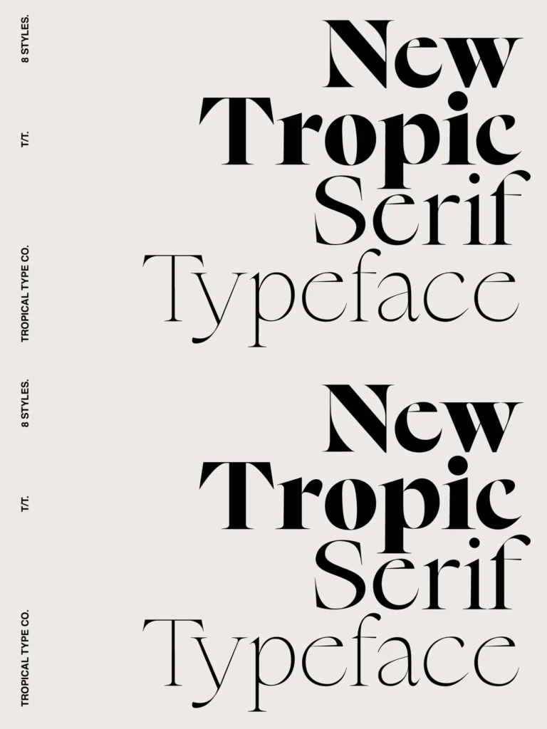 New Tropic is your go to serif font family. A modern typeface that is stylish but also generic enough to be used over and over. 4 distinct weights that all come with italics are included.