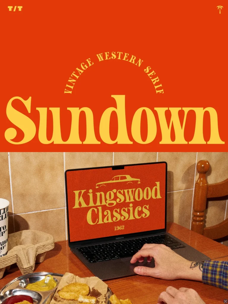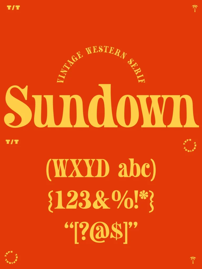 Sundown Serif is vintage inspired western typeface that has nostalgia on tap. Western vibes are so hot right now, and vintage is always in, so i’ve blended the two for maximum effect. The bell bottom curves contrast the more formal serif ends that join together at the bottom in this tightly spaced font to make a smooth flowing effect.
