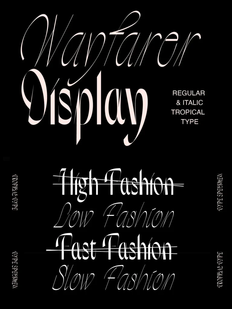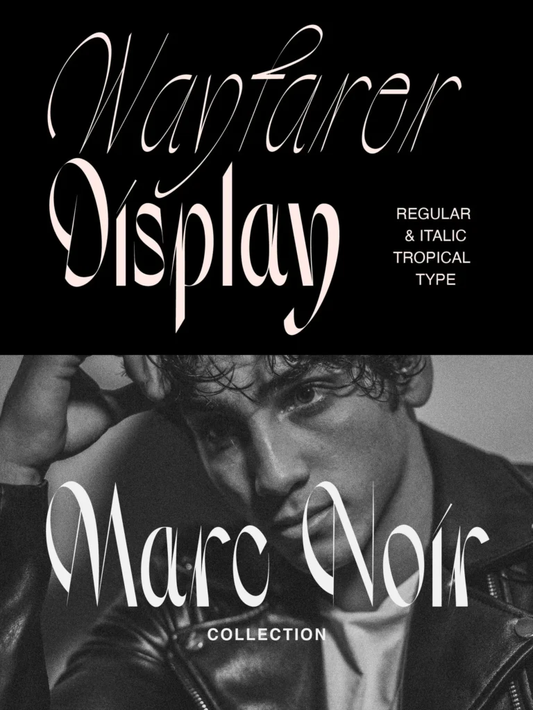 Wayfarer Display is an ultra edgy modern serif with a light calligraphic italic to pair.